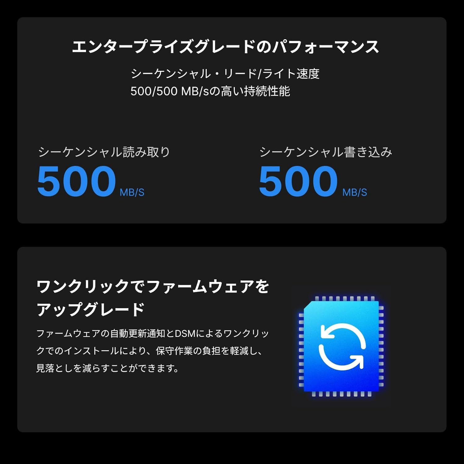 32GB RAM DDR4 SDRAM. This NAS is capable of sequential read speeds up to 736 MB/s and sequential write speeds of up to 796 MB/s.