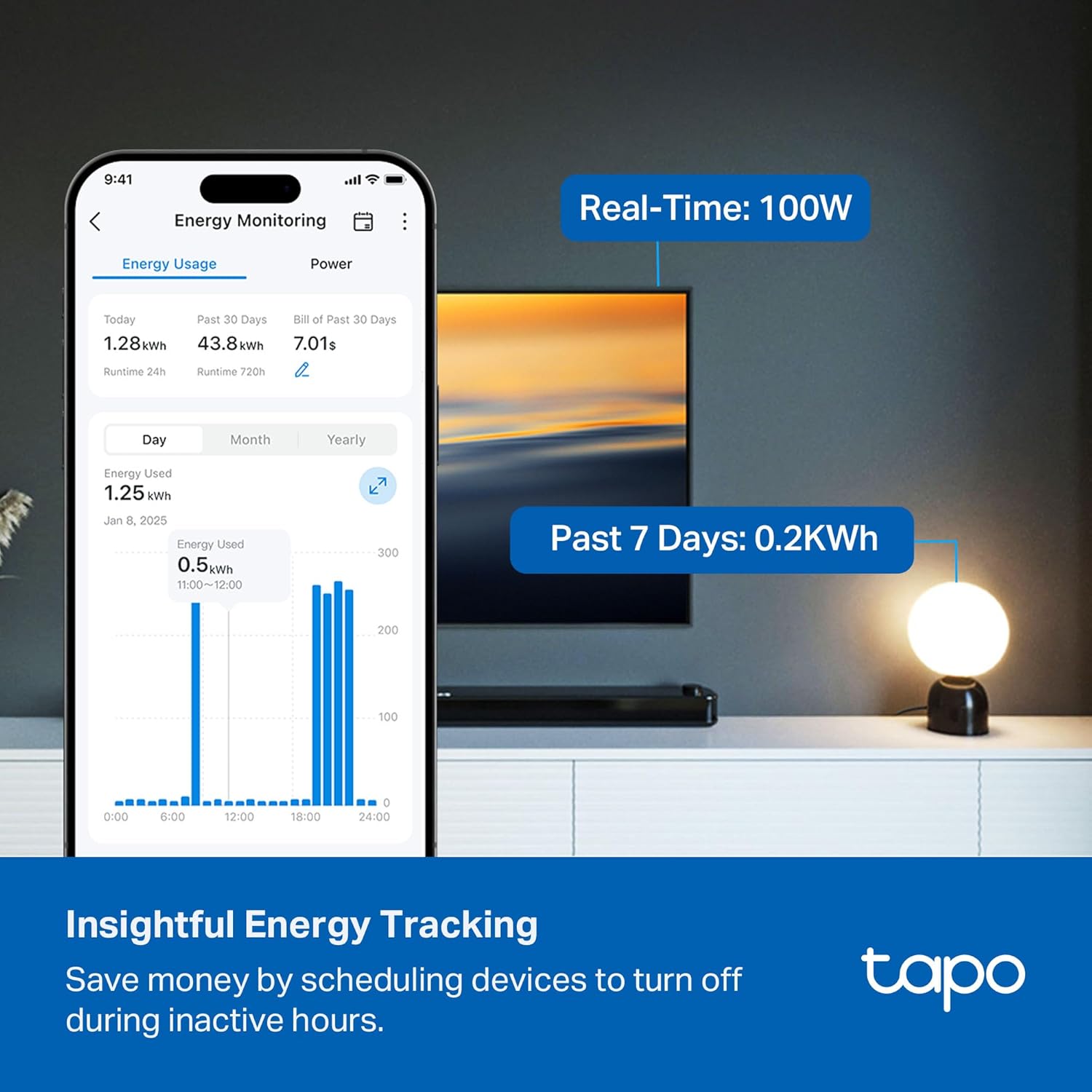 𝐓𝐫𝐚𝐜𝐤 𝐄𝐧𝐞𝐫𝐠𝐲 𝐔𝐬𝐞 & 𝐂𝐮𝐭 𝐂𝐨𝐬𝐭𝐬 – Monitor energy consumption for each AC outlet with comprehensive insights, and save money by scheduling devices to turn off during inactive hours.