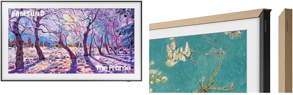 “CUSTOMIZABLE BEZEL* AND MODERN FRAME DESIGN: Complement your style with the Customizable Bezel and minimalistic design for The Frame. The Frame was designed to be slim and sleek with a monochromatic back to flawlessly blend in. Plus, pick the bezel type and color to fit you home décor, and simply snap it on. It’s magnetic making it easy to change when the mood or inspiration strikes”