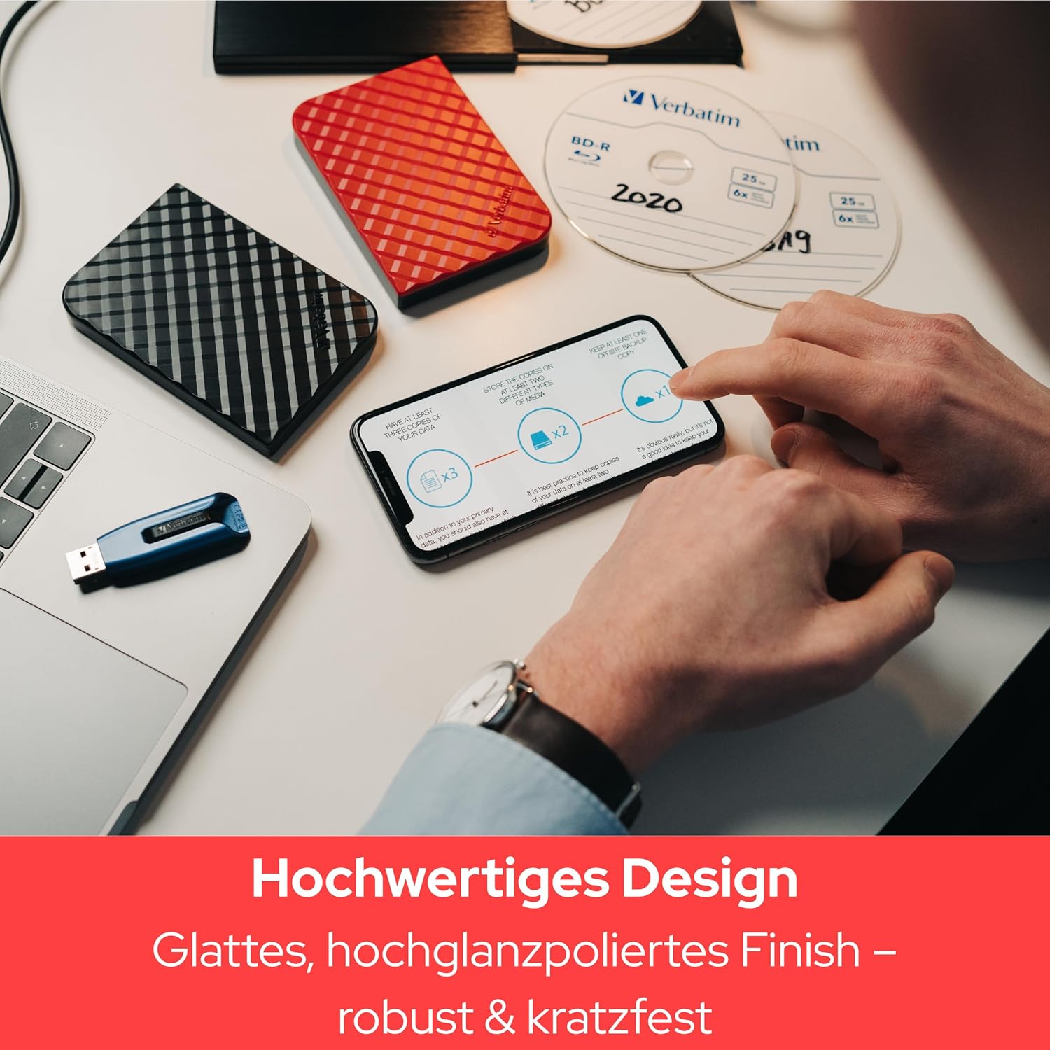 Premium blue metallic finish housing – optional password protection available for Windows download
