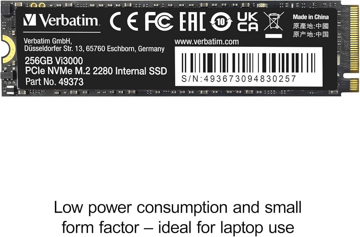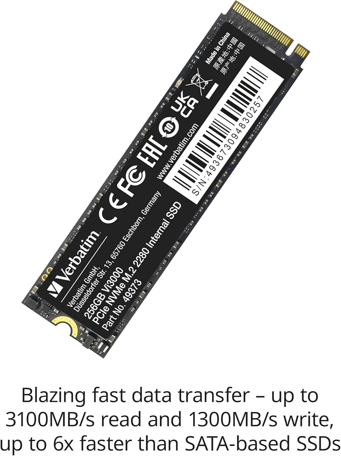 Verbatim’s Vi3000 PCIe NVMe M.2 2280 Internal SSDs are designed for users who demand the ultimate in speed and performance. Thanks to the PCIe NVMe Gen 3.0 x4 interface, you can enjoy blazing fast data transfer speeds, up to 6x faster than SATA-based SSDs. Transfer multiple or large files with ease with read speeds up to 3100MB/s and write speeds up to 2200MB/s. (Sequential transfer speeds based on internal testing using ATTO benchmark. Actual performance may vary depending on host computer environment, and use conditions.) The small M.2 2280 form factor saves space without sacrificing performance, even with limited chassis or motherboard space. Transform the performance of your desktop or laptop and enjoy decreased system boot time, more efficient multi-tasking, and faster system responsiveness. Verbatim’s Vi3000 PCIe NVMe M.2 2280 Internal SSDs are backed by a 2-year limited warranty.