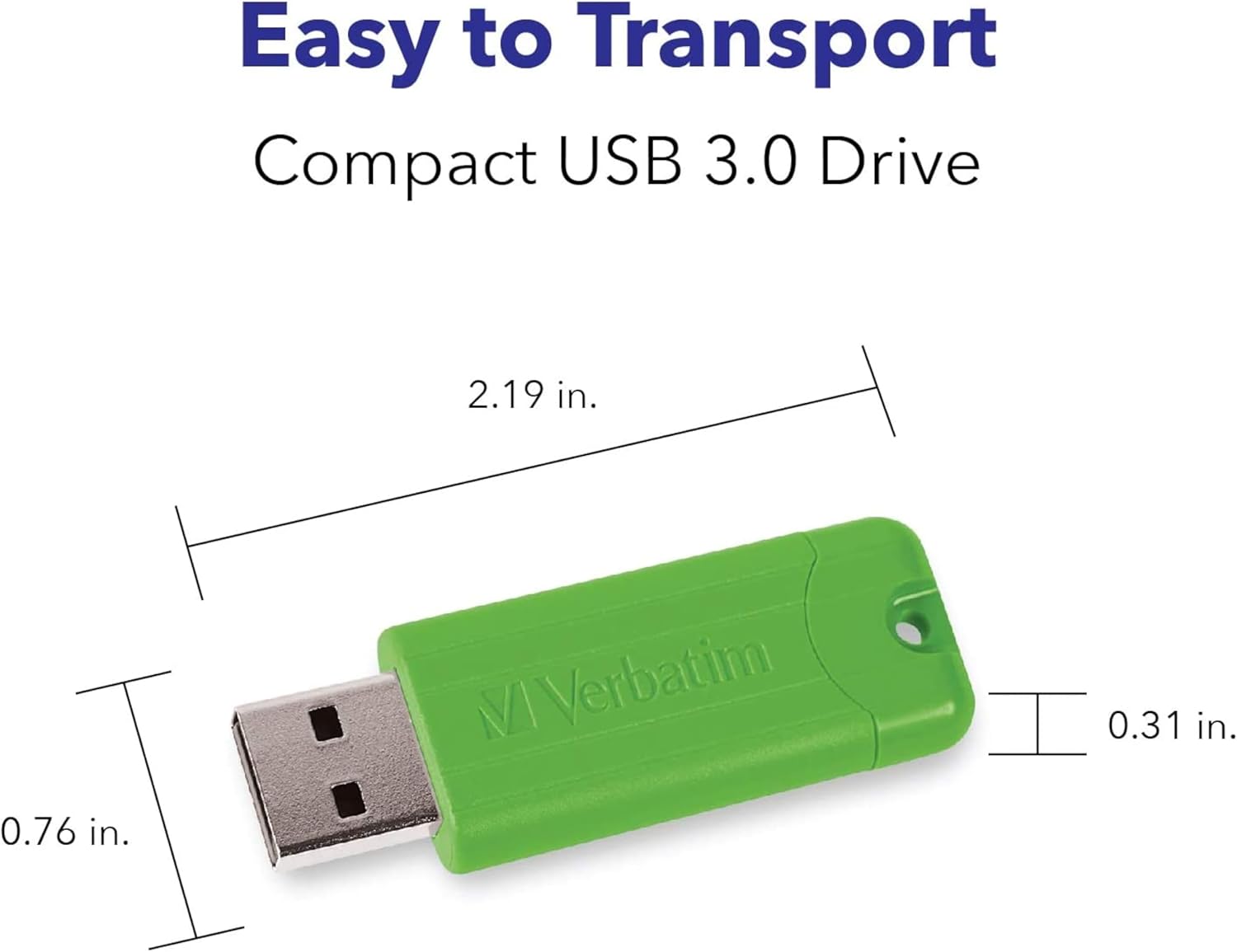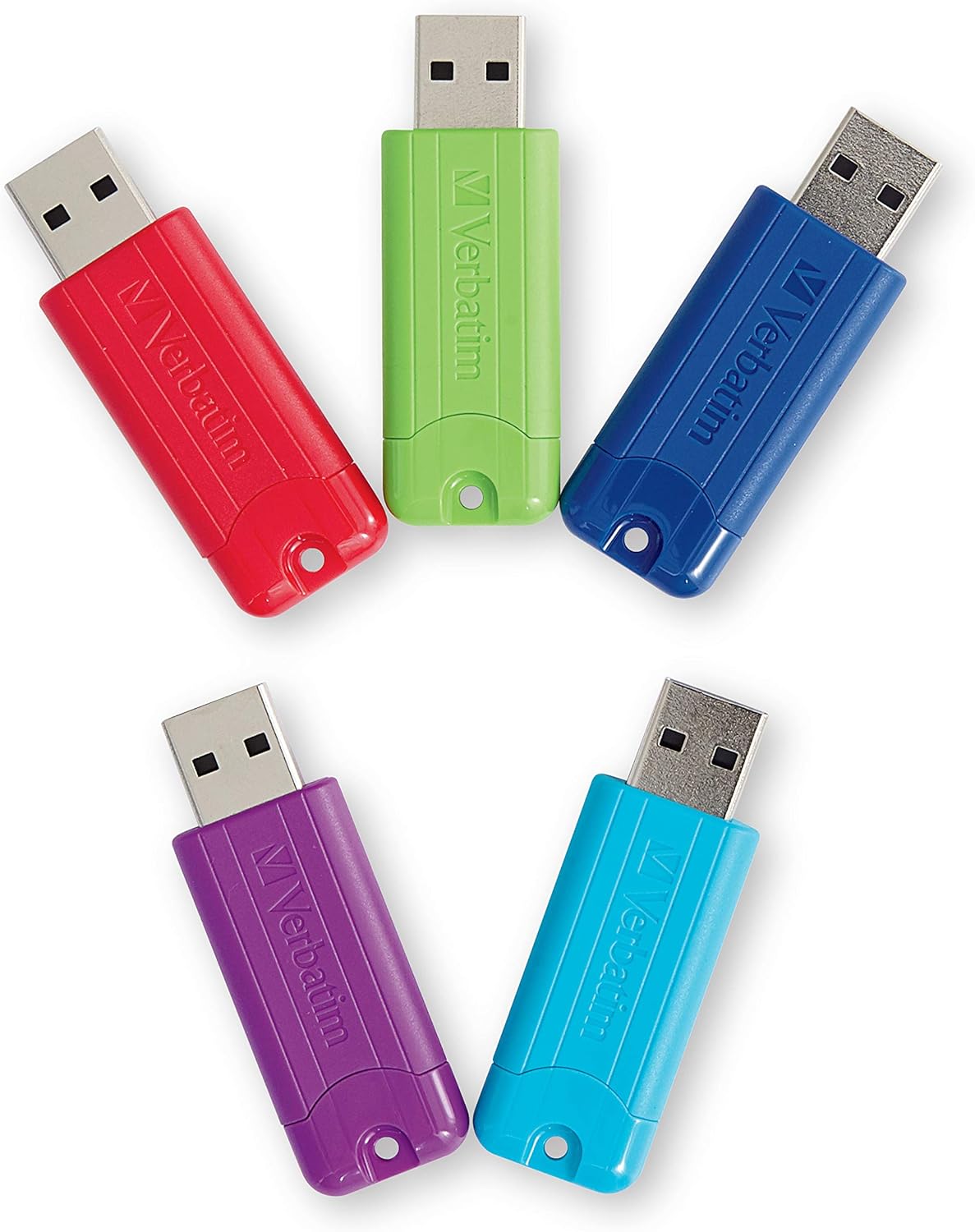 Verbatim 64GB Pinstripe USB 3.2 Gen 1 Flash Drive Retractable Thumb Drive – 5 Pack – Multicolor (Green, Blue, Red, Purple, Cyan)