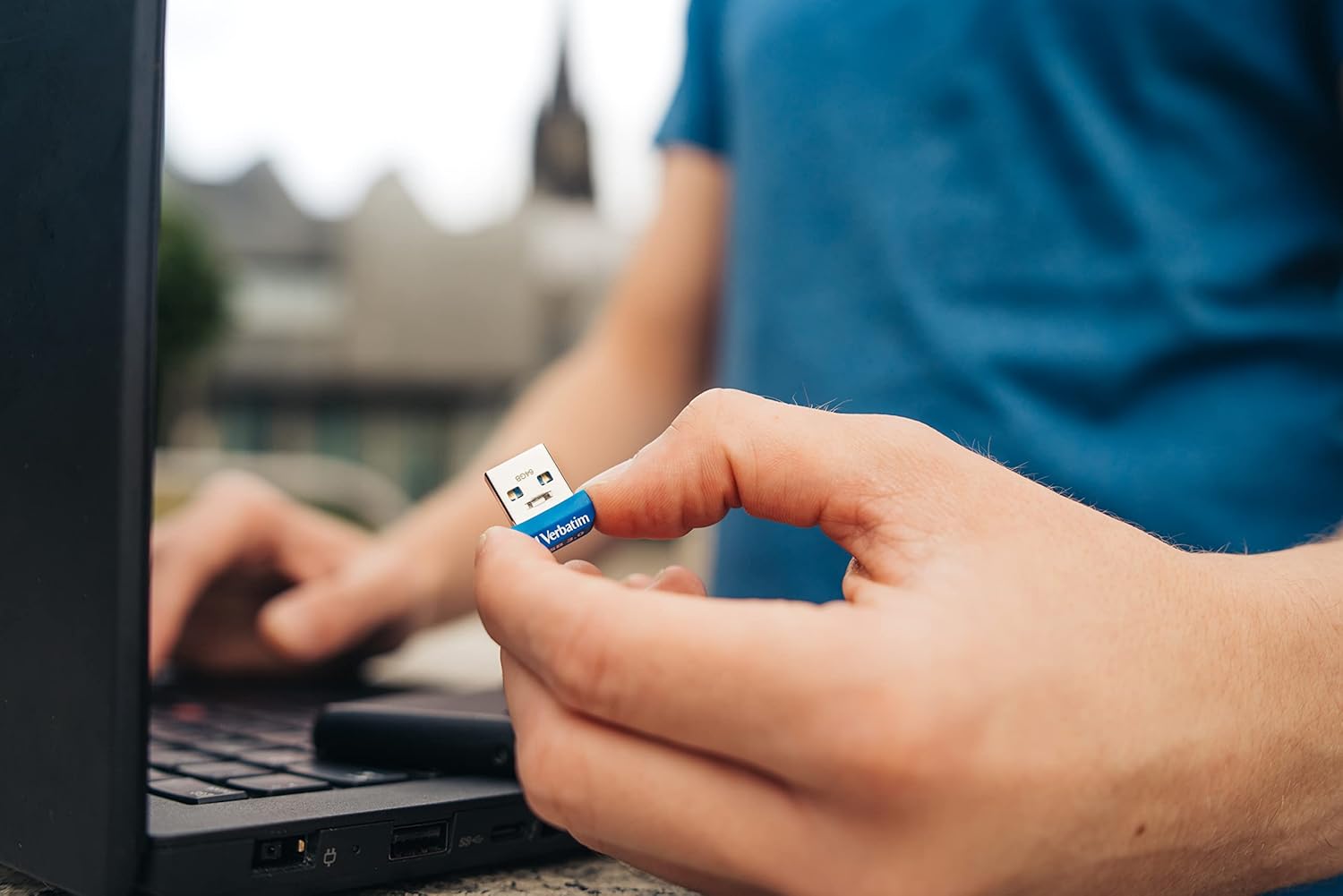 Easily add more storage to your laptop or car stereo with Verbatim’s Store ‘n’ Stay Nano USB 3.2 Gen 1 up to 10X faster than USB 2.0 while still compatible with USB 2.0 ports