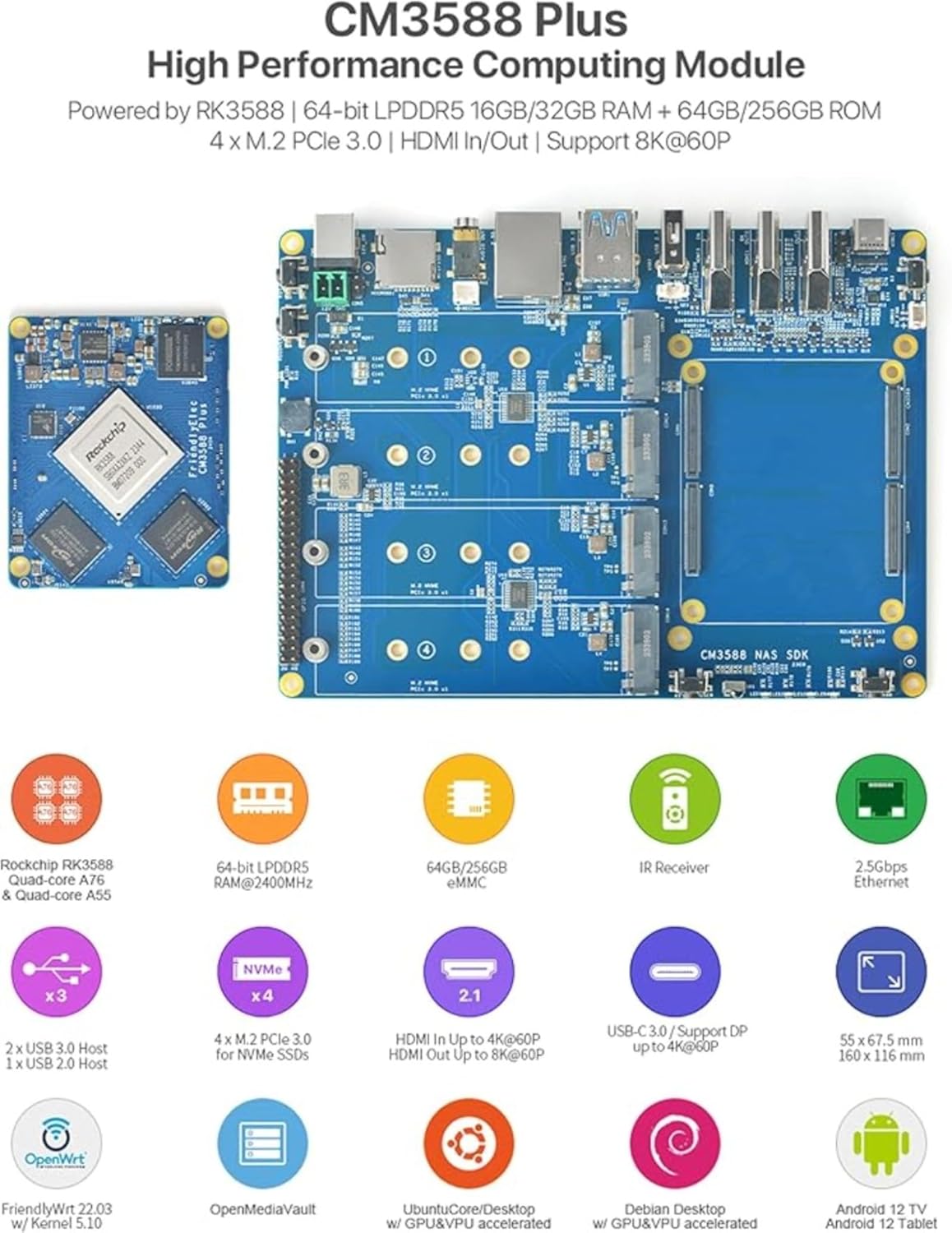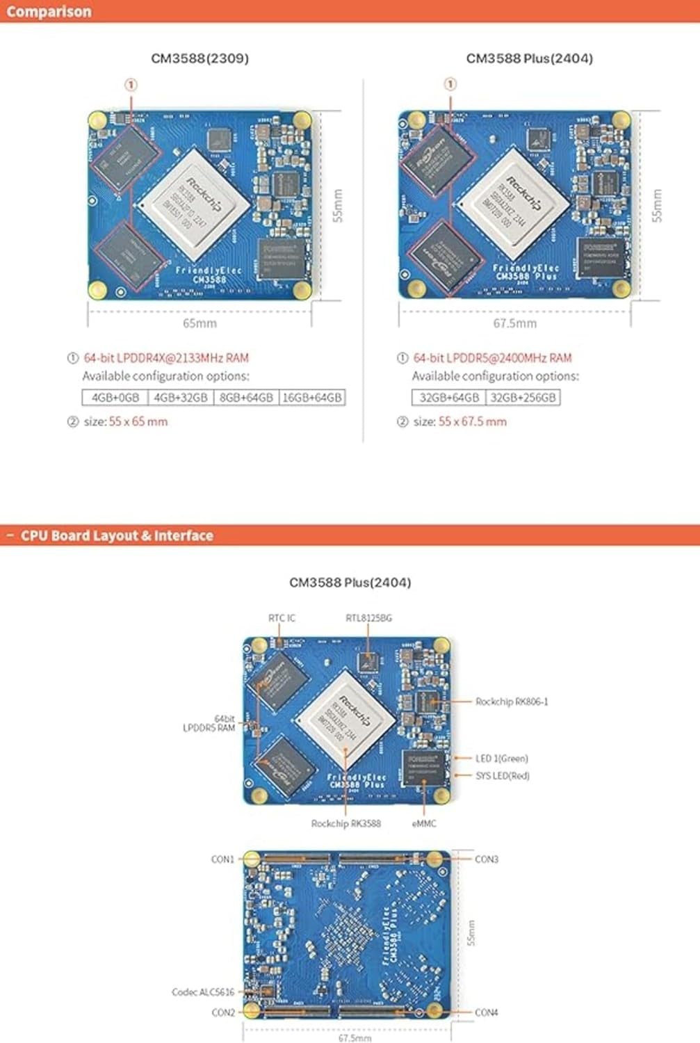 [High-Performance Computing Module] The CM3588 Plus is a high-performance ARM computing module developed by the FriendlyElec team, featuring the Rockchip RK3588 as the main control processor.